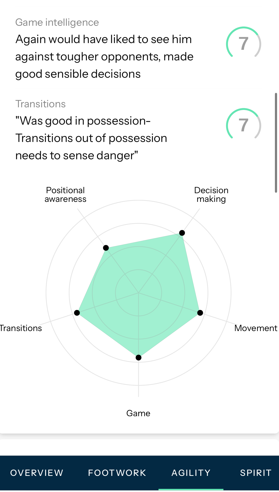 Footwork, Agility, and Spirit. This forms your unique Noble Score which helps determine the next steps in your footballing journey, whether it's further development or an intro to a pro club.
