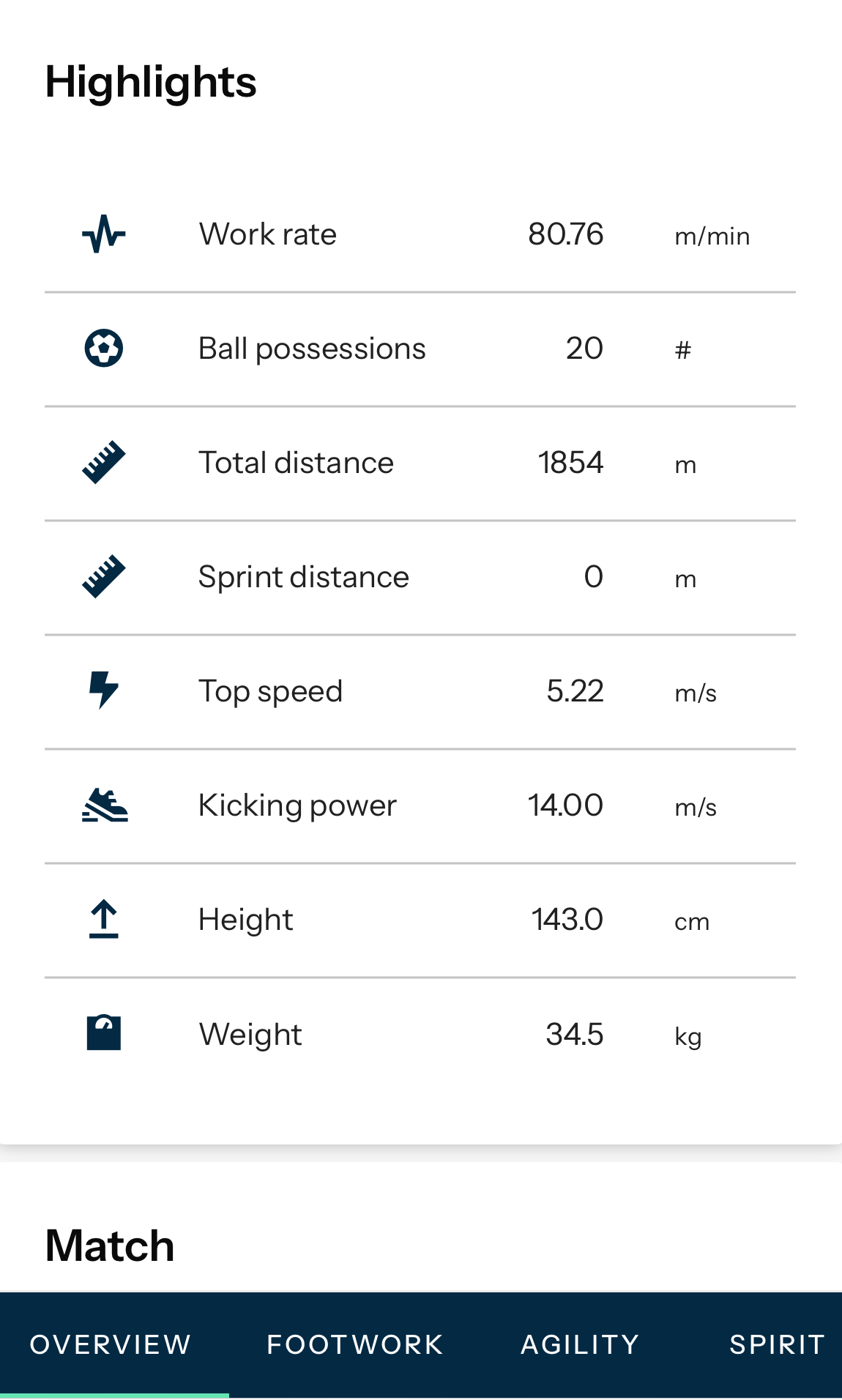 This data gives us a 360° view of a player’s technical and physical profile, benchmarked against professional standards. It helps us identify strengths, track progress, and tailor development plans with precision.